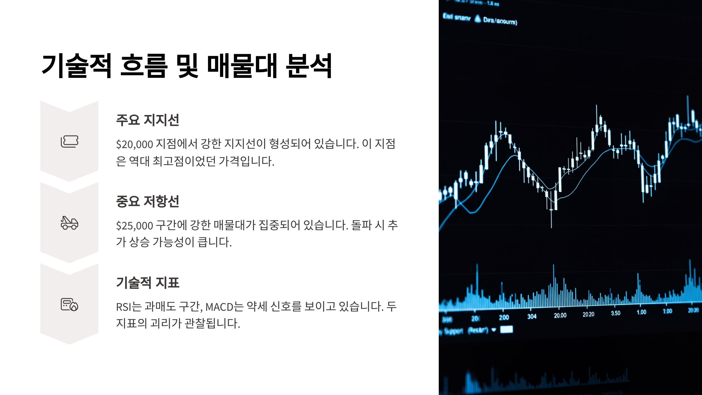 기술적 분석에서는 “아직 방향은 미정이지만, 에너지는 모이고 있다”는 표현이 딱 맞는 상황이에요. 그림을 그리는 중이라고 볼 수 있죠. 📈