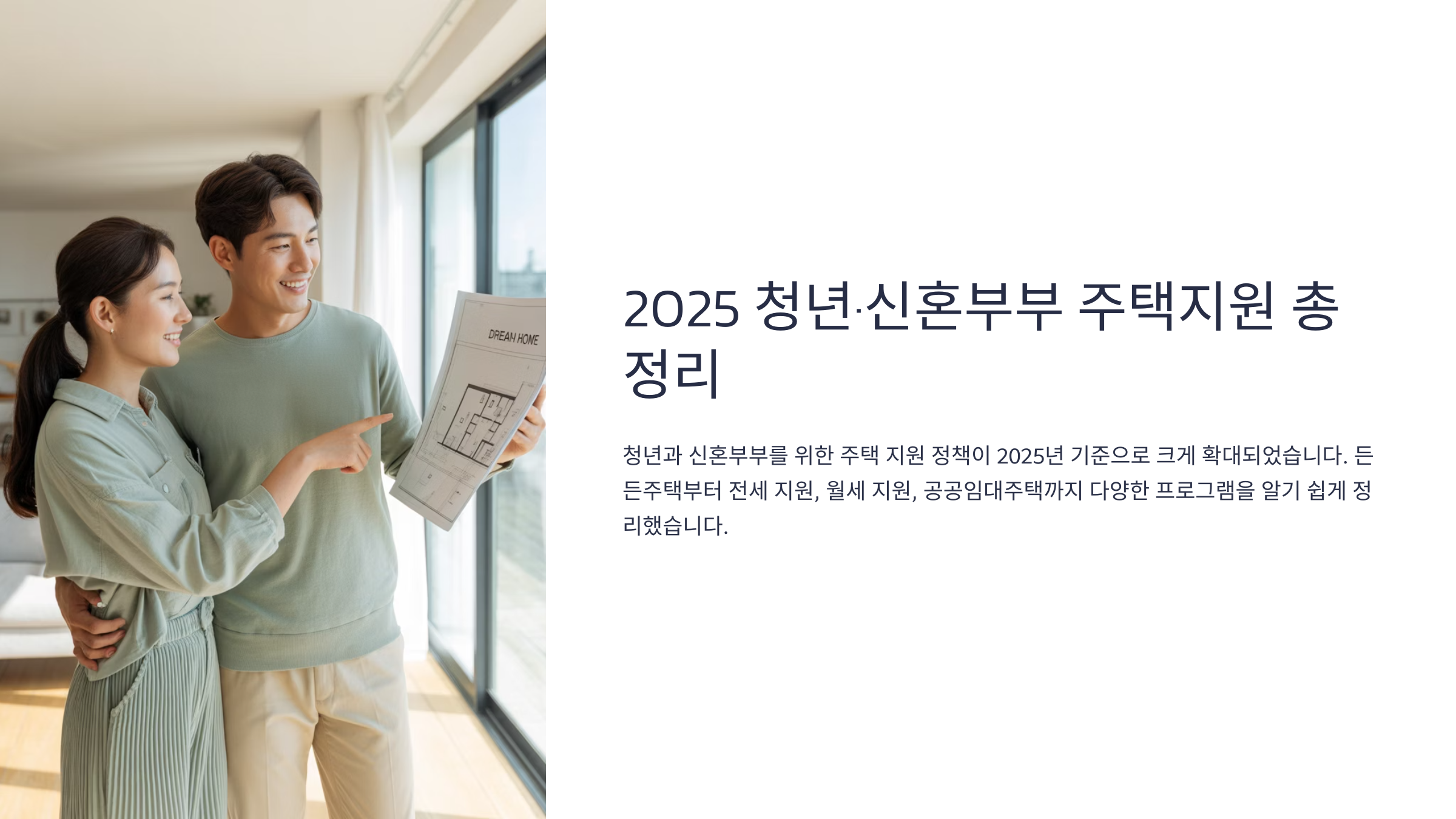 이 글에서는 2025년 현재 신청 가능한 청년·신혼부부 주택 지원 제도를 하나씩 정리해서 알려드릴게요. 나에게 딱 맞는 제도가 뭔지 빠르게 찾을 수 있도록 간결하고 알기 쉽게 정리했어요.