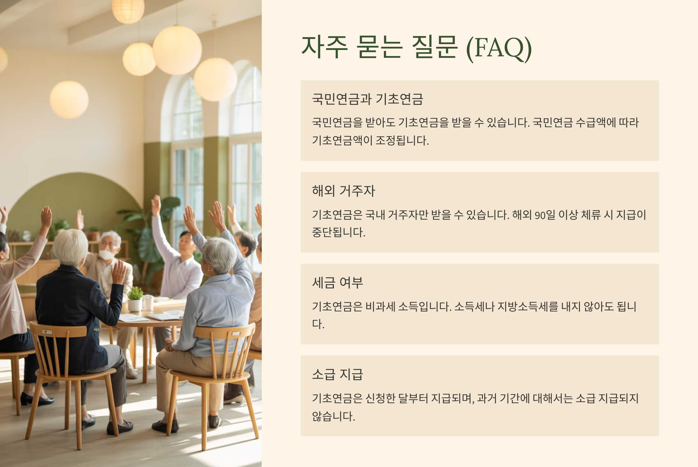 기초연금은 단순한 복지급여가 아니라 어르신들의 존엄한 생활을 보장하는 권리예요. 국민연금과는 별개로 지급되며, 국민연금을 받지 않는 분들도 충분히 신청할 수 있답니다. 내가 생각했을 때 이 제도야말로 고령화 사회를 맞이한 우리나라의 가장 든든한 노후보장 정책이라고 할 수 있어요.