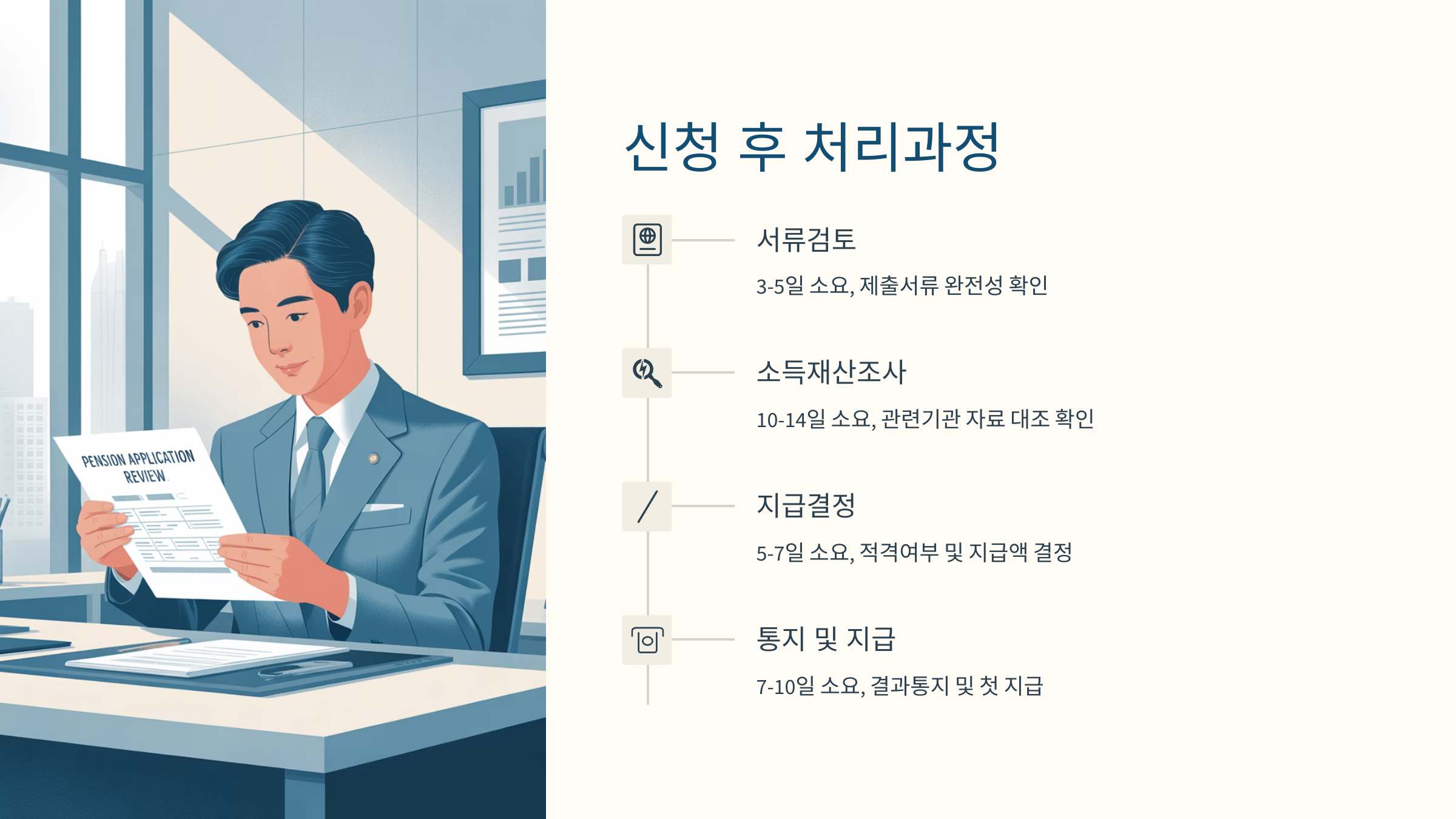 | 통지 및 지급 | 7-10일 | 결과통지 및 첫 지급 |