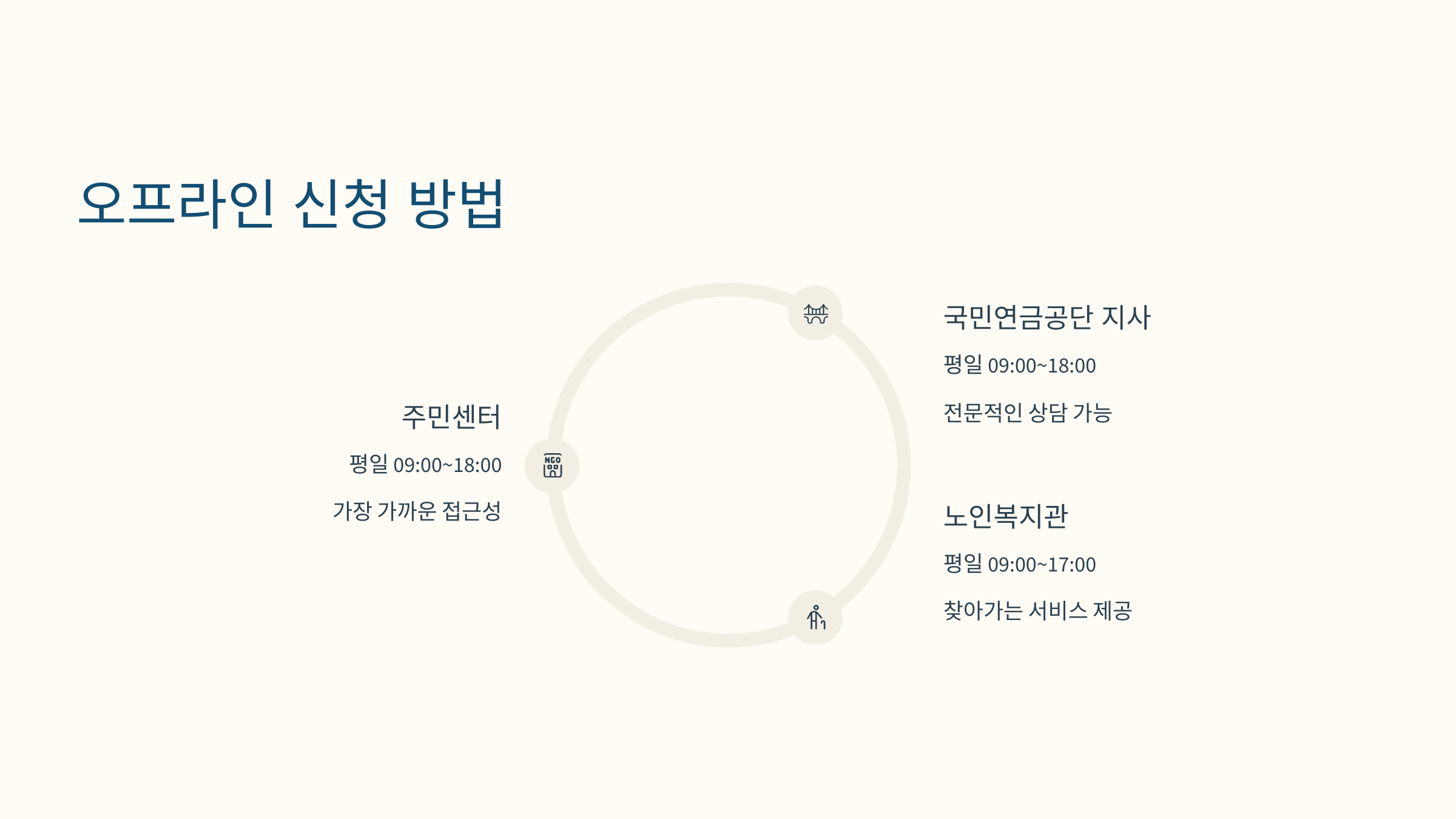 오프라인으로 기초연금을 신청할 수 있는 곳은 여러 곳이 있어요. 가장 일반적인 곳은 주민센터인데, 거주지 관할 주민센터에서 신청할 수 있어요. 국민연금공단 지사에서도 신청 가능하고, 일부 지역에서는 노인복지관이나 경로당에서도 찾아가는 서비스를 제공하고 있어요. 방문하기 전에 미리 전화로 운영시간과 필요서류를 확인해보는 것이 좋아요.