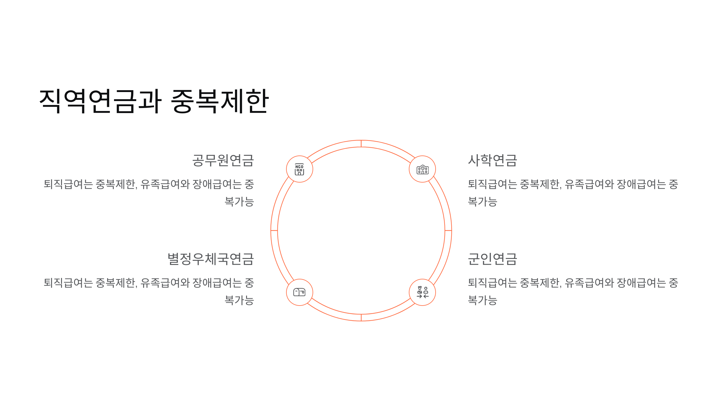 | 군인연금 | 중복제한 | 중복가능 | 중복가능 |