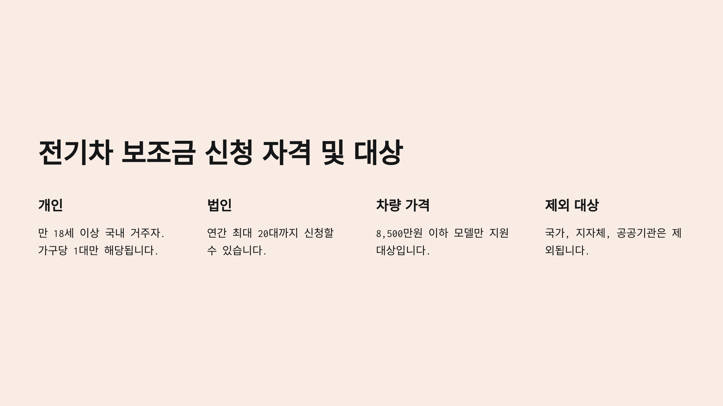 📌 그럼 먼저 전기차 보조금을 받을 수 있는 신청 자격부터 알아볼까요?