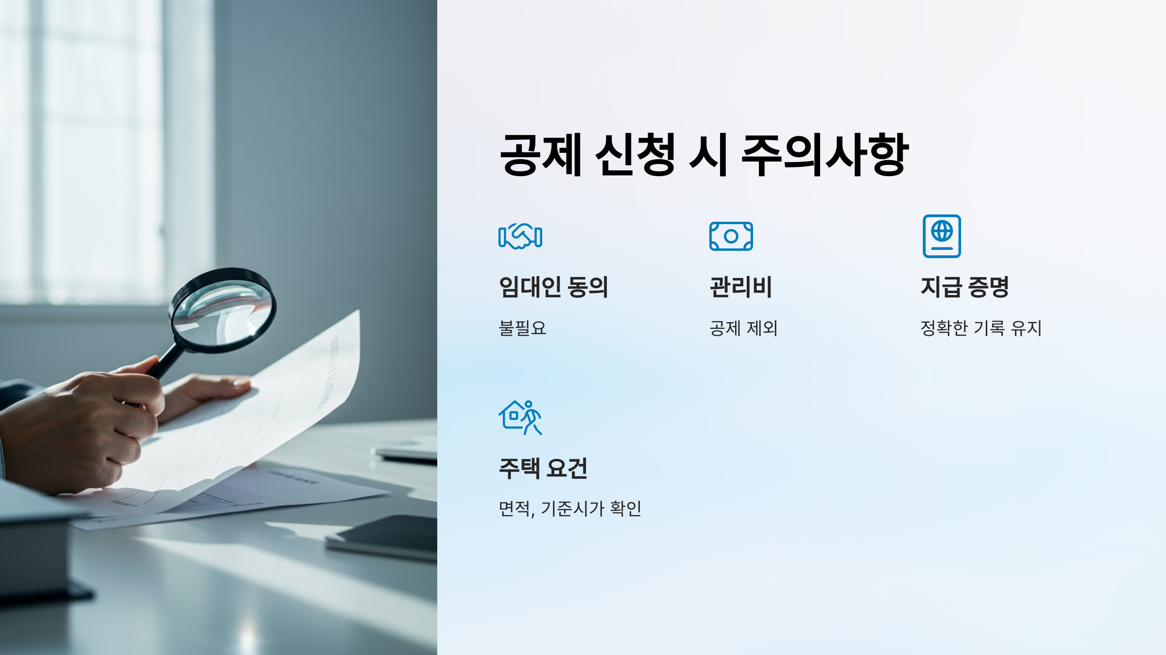 | 📌 월세 현금 납부 | 현금 지급 시 납입 증빙이 어려움 | 반드시 계좌이체로 납부 |