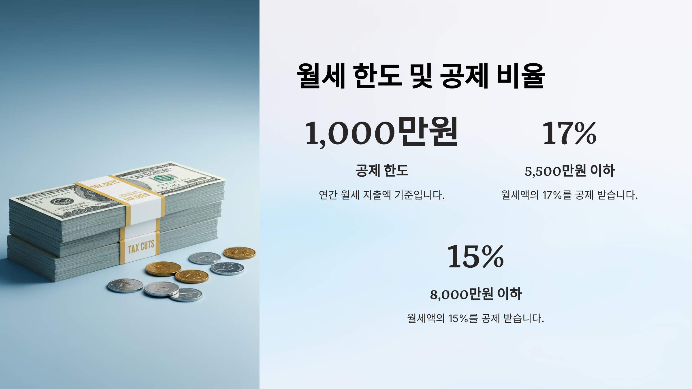 💰 그렇다면, 월세 세액공제를 받을 수 있는 공제 한도와 비율은 어떻게 될까요?