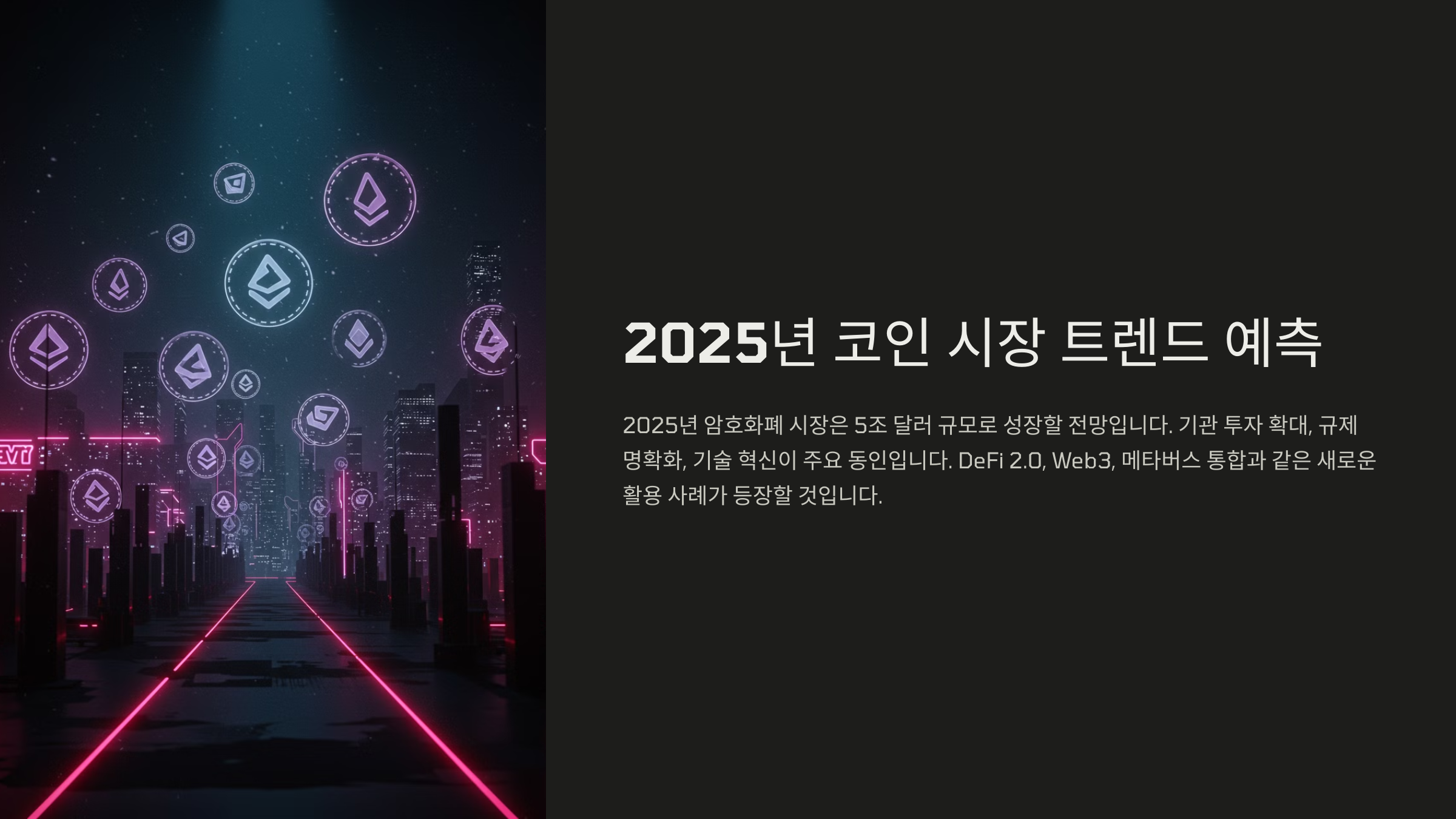 코인 시장은 변동성이 크지만, 올바른 정보와 전략을 갖춘다면 큰 기회를 잡을 수도 있어요! 이번 글에서는 2025년 코인 시장 트렌드, 유망 코인, 가격 전망 등을 종합적으로 분석해볼게요. 📊